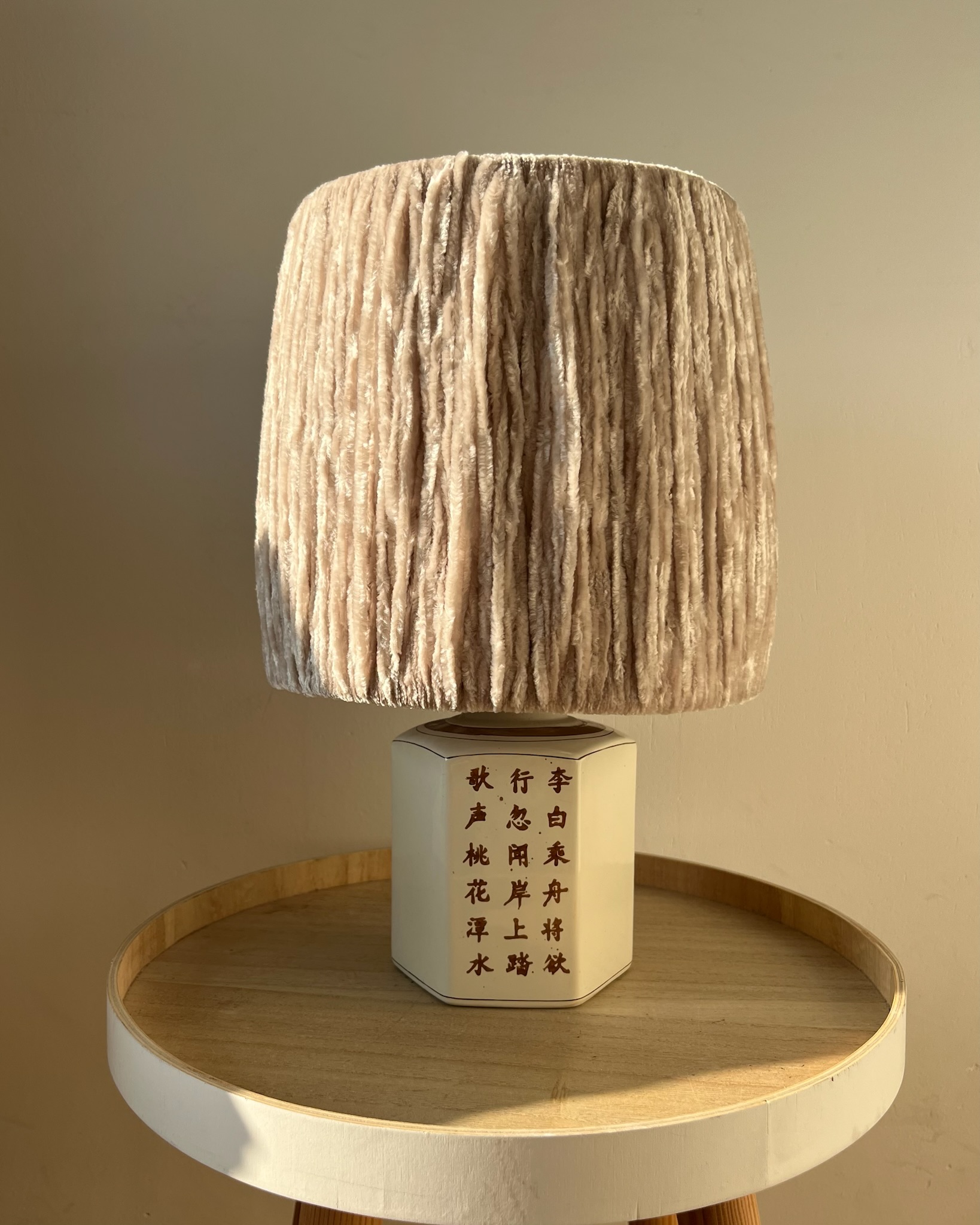 From Chinese script to contemporary light in beige and white tones. 🥢🎎