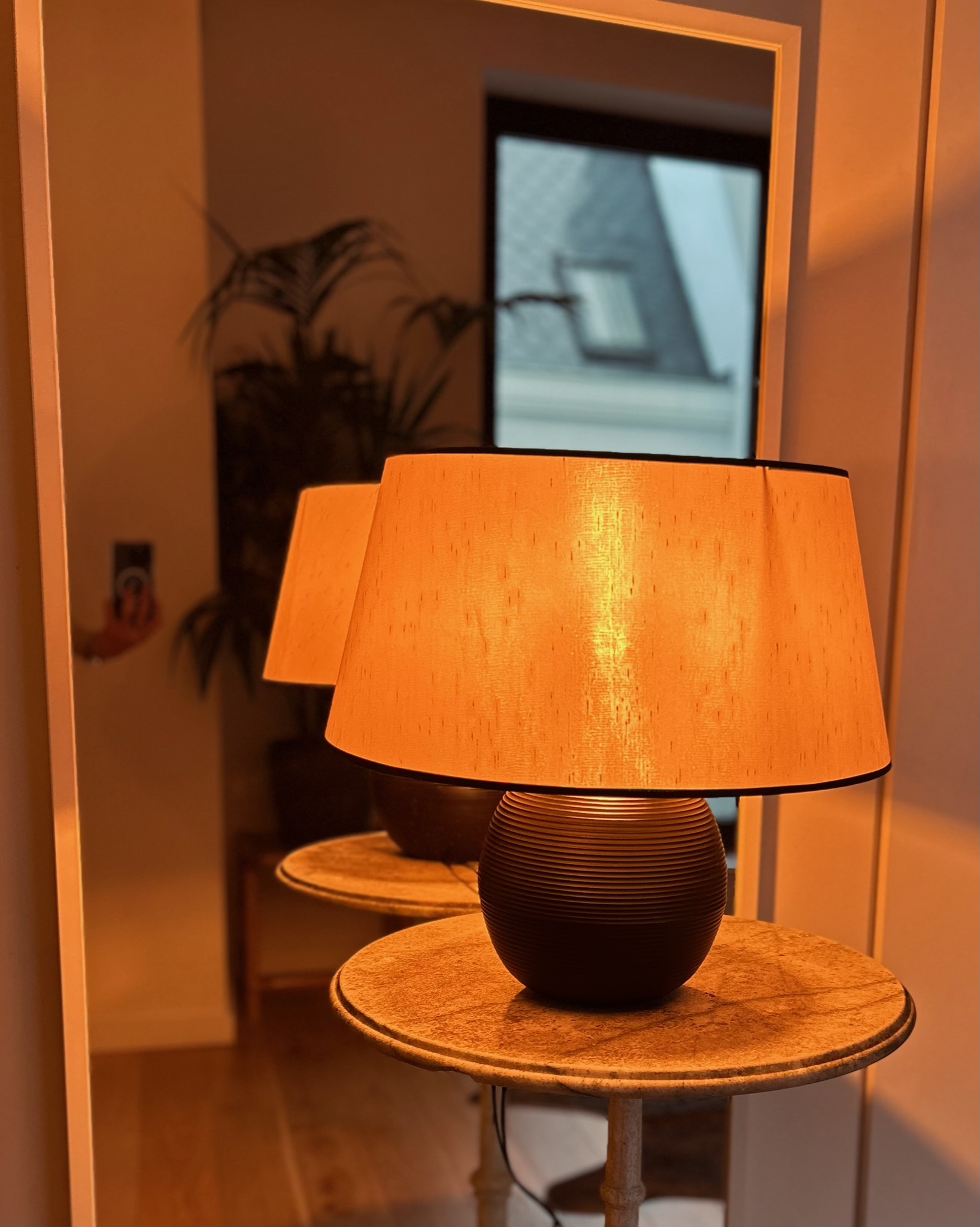 A simple but effective trick: place a lamp near a mirror. It reflects the light and instantly makes the room feel more open and spacious.